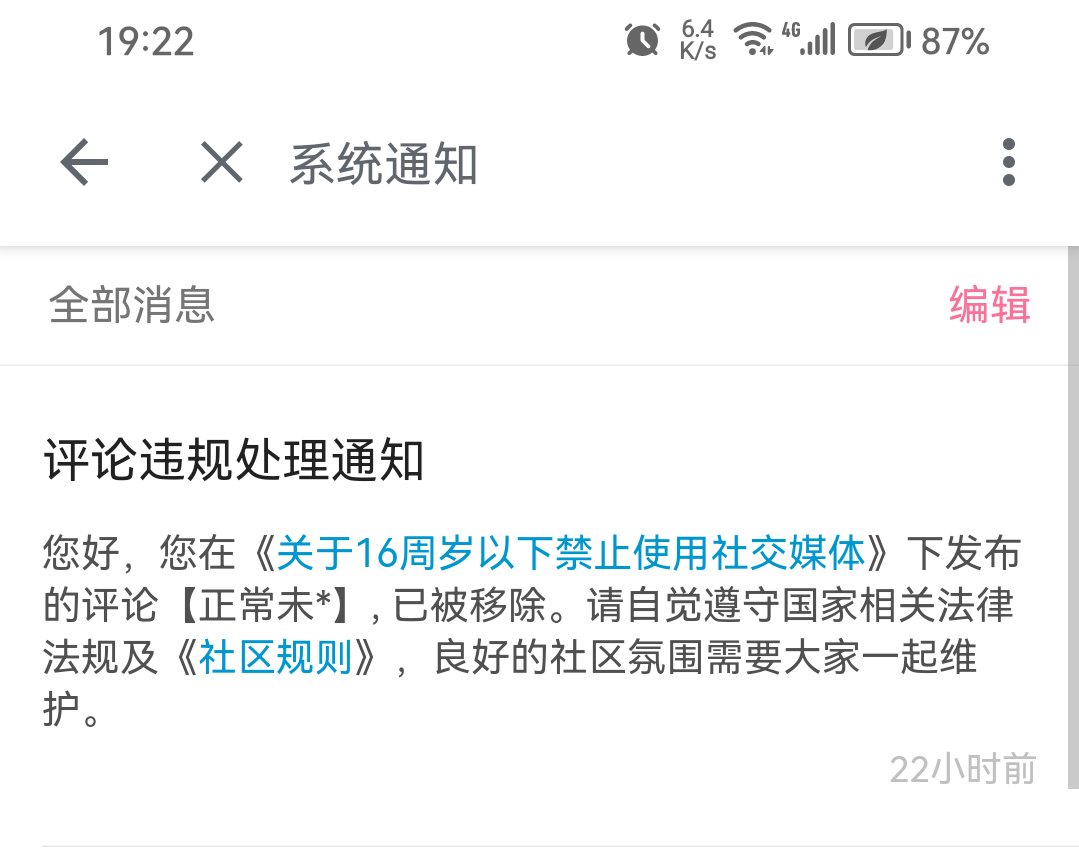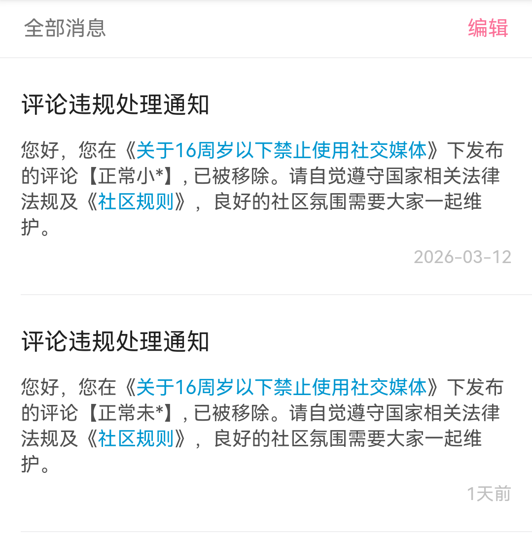 发布正常未成年人现状描述,连续遭遇恶意举报并被系统误删。